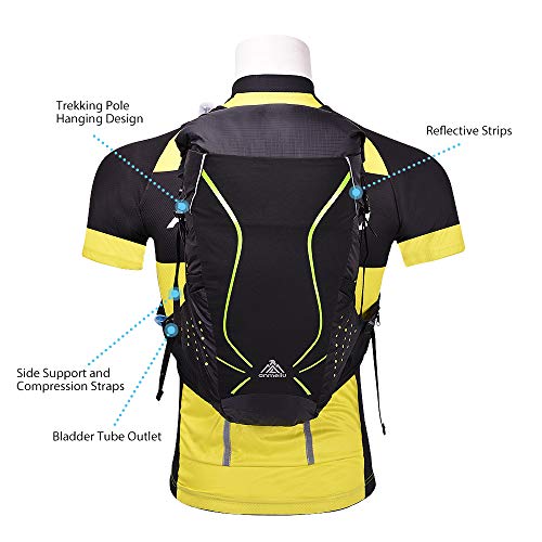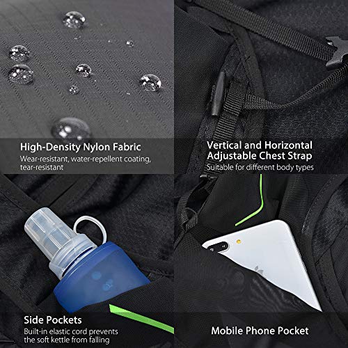 [Multifunctionele zakken en hoge capaciteit]: het buitengewone design voor het ophangen van de trekkingstokken bevrijdt je handen. Twee borstzakken zijn geschikt voor kleine dingen zoals mobiele telefoon en sleutels. Het hoofdvak van 18 liter zorgt ervoor dat je alles kunt dragen wat je wilt. Hij heeft het achterste watervak, twee zijvakken, twee zakken aan de voorzijde bieden voldoende opbergruimte voor het opbergen van zakken en waterflessen.