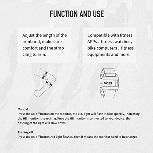 Specification: XOSS Hartslagmeter Bluetooth/ANT + voor smartphone en fietscomputer Borstband/armband Hartslagsensor Hardlopen Sport