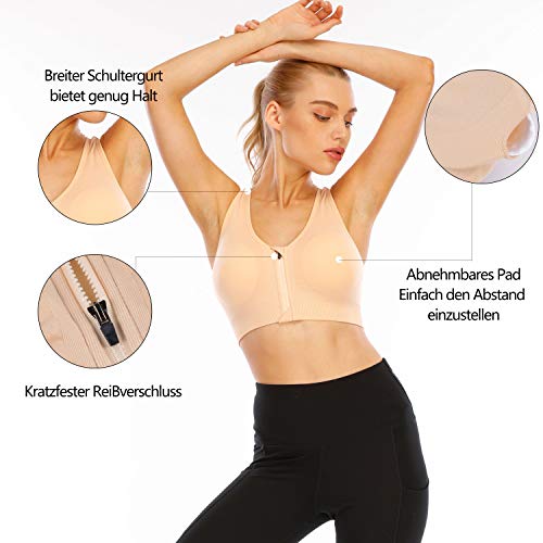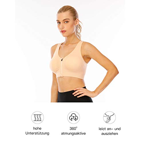 Specification: Vertvie Sportbeha voor dames, met ritssluiting aan de voorkant, push-up, racerback, comfortabele beha zonder beugel…