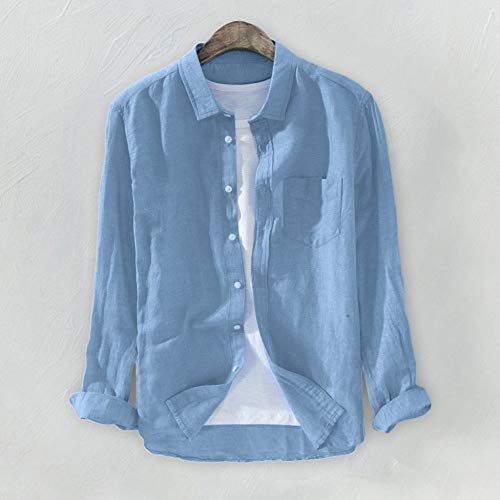 Specification: Heren Casual Lange Mouwen Overhemden,Casual Katoenen Linnen Overhemd Met Lange Mouwen Klassiek Eenkleurig Blauw Baggy…