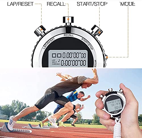 Groot scherm display: sportstopwatch, groot scherm display, groot digitaal display, eenvoudig om de tijd te controleren en gegevens op te nemen.